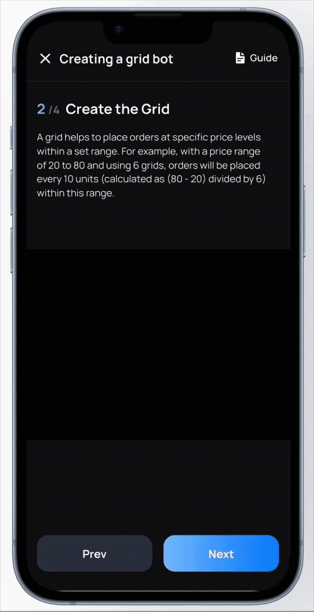 We made a new design where we explain how grid trading works in 3 simple steps for newbie users and with experienced users they can just skip the tutorial and go directly to settings. We organized a second round of user test with 4 new participant, and this time the test results were successful.